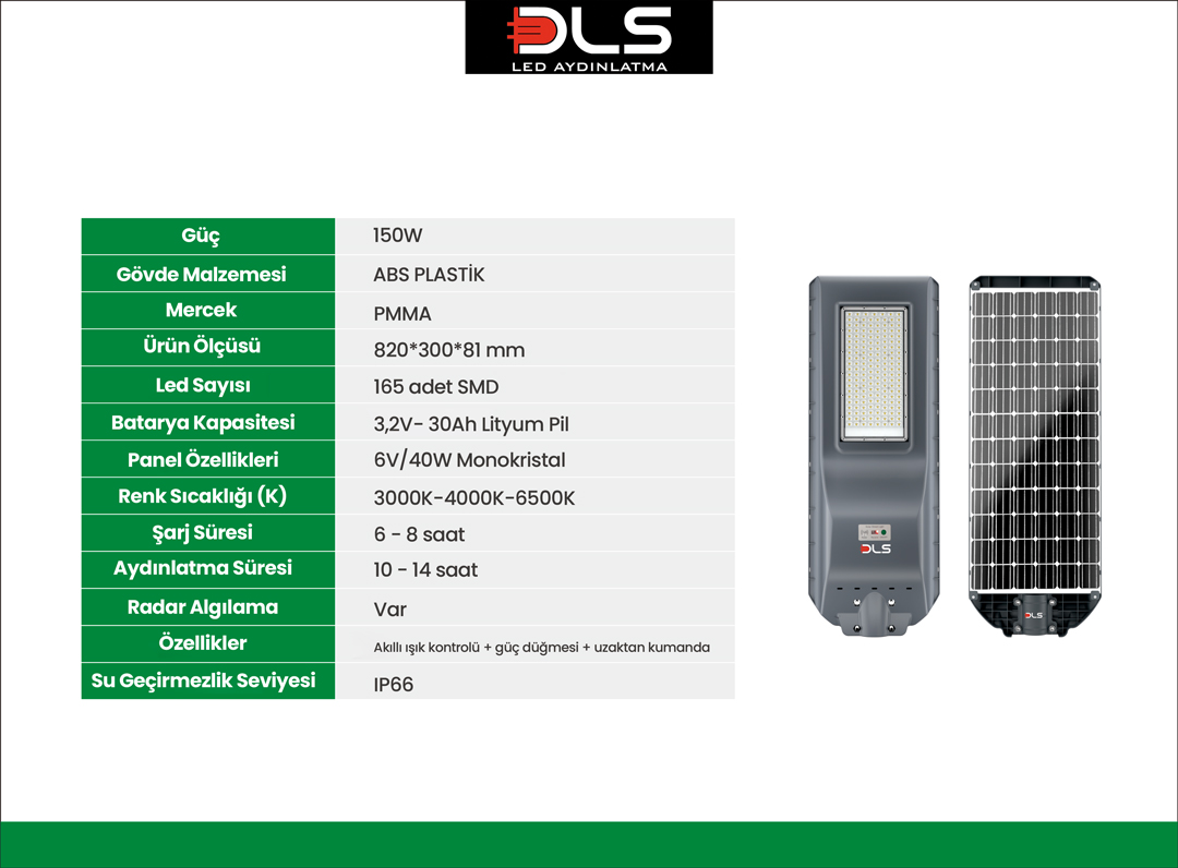 150W PROFESYONEL GÜNEŞ ENERJİLİ AYDINLATMA